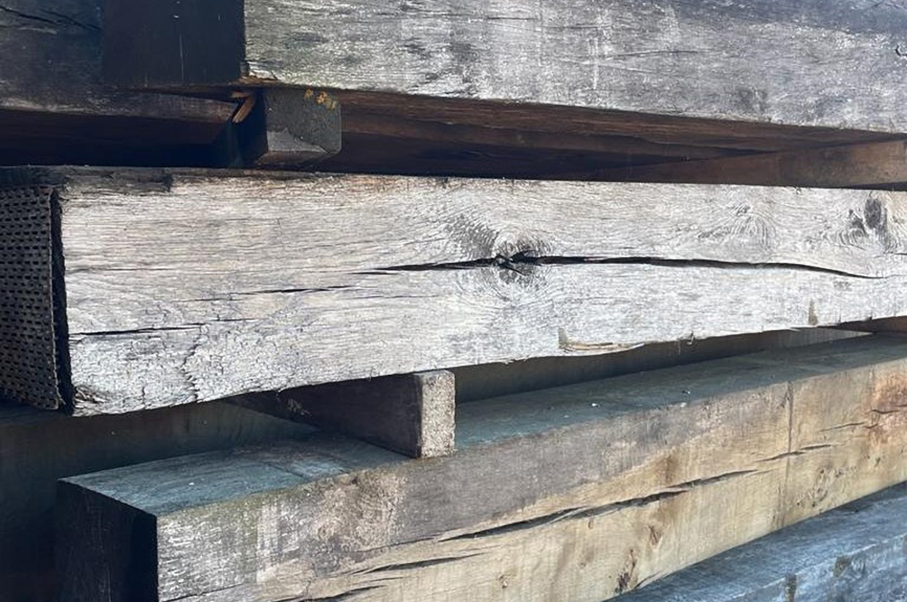 Fresh or air-dried beams, grey-coloured or natural ones.